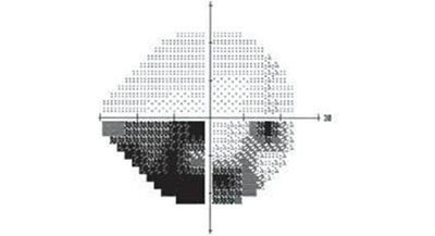 視野決定了眼睛能看到的范圍,如果視野出現(xiàn)缺損(上圖黑色部分),就說明眼睛在黑色部分里是看不見的。