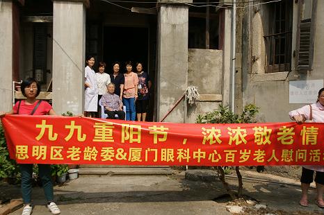 九九重陽節(jié),濃濃敬老情。在九九重陽節(jié)即將到來之際,10月11日上午,思明區(qū)老齡辦湯淑琴主任、思明區(qū)福利協(xié)會會長楊玲以及廈門眼科中心黃婉榮博士等醫(yī)護人員一行,在鼓浪嶼街道辦工作人員陪同下,來到鼓浪嶼4位百歲老人家中,親切看望并慰問百歲老人,為他們送去慰問金和慰問品,并由眼科醫(yī)院的醫(yī)生給老人常規(guī)健康體檢和眼部檢查,祝福老人們身體健康。
