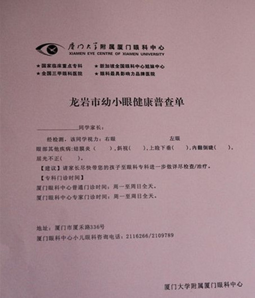 眼睛是心靈的窗口,保護(hù)眼睛從小抓起。2013年12月3日,廈門(mén)大學(xué)附屬?gòu)B門(mén)眼科中心斜弱視及小兒眼科楊美瓊主任帶領(lǐng)小兒眼科專(zhuān)家團(tuán)隊(duì)到龍巖市多所小學(xué)、幼兒園無(wú)償為上千個(gè)孩子進(jìn)行詳細(xì)的視力檢查,溪南小學(xué)是這次普查活動(dòng)的其中一站。