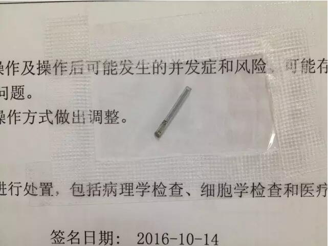 當天晚上,伍端曉接診后,詳細檢查后發(fā)現(xiàn)這枚鐵釘已經(jīng)將眼球射穿了,需要馬上手術取出。在經(jīng)過1個多小時的精心手術,伍主任在張師傅的眼里取出了一根約10毫米長的鐵釘!