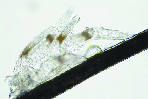 顯微鏡下長(zhǎng)在睫毛中的螨蟲