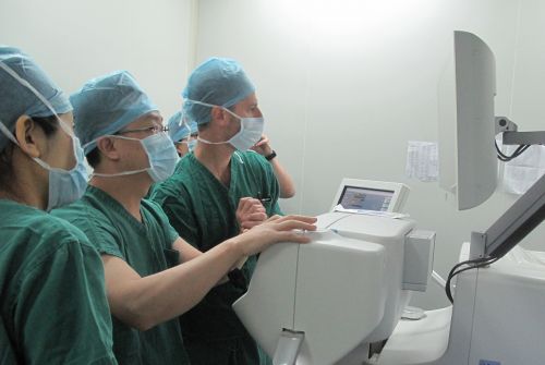 ▲張廣斌院長為患者做飛秒白內障手術