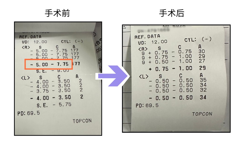手術(shù)過程精準(zhǔn)流暢,術(shù)后當(dāng)天下午復(fù)查,他的裸眼視力已躍升至0.8。