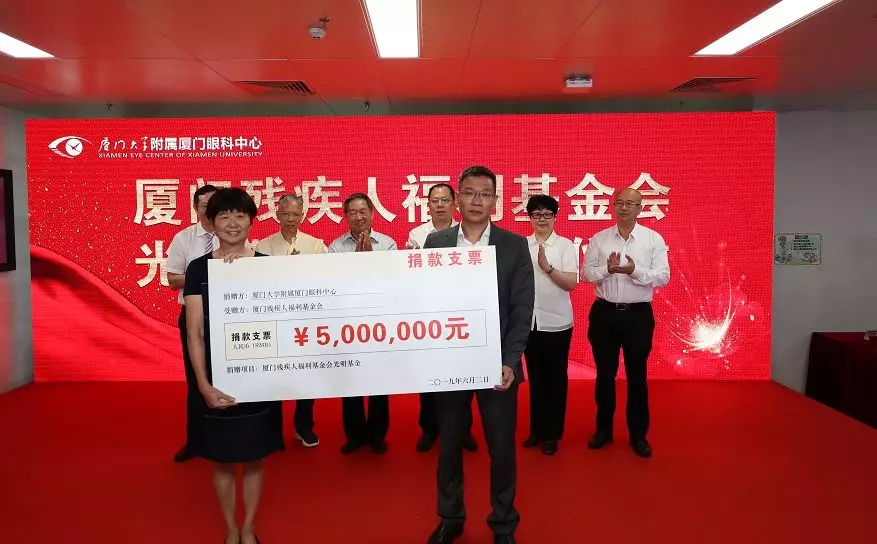五緣院區(qū)開(kāi)業(yè)儀式上,廈門(mén)眼科中心再次將“光明的信仰”傳遞——為廈門(mén)市殘聯(lián)捐款500萬(wàn)元,成立專項(xiàng)基金,用于視力殘疾預(yù)防、眼科手術(shù)救助、盲人協(xié)會(huì)活動(dòng)等。