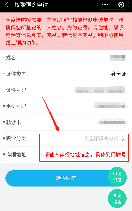 “核酸檢測預約”-“增加就診人信息”