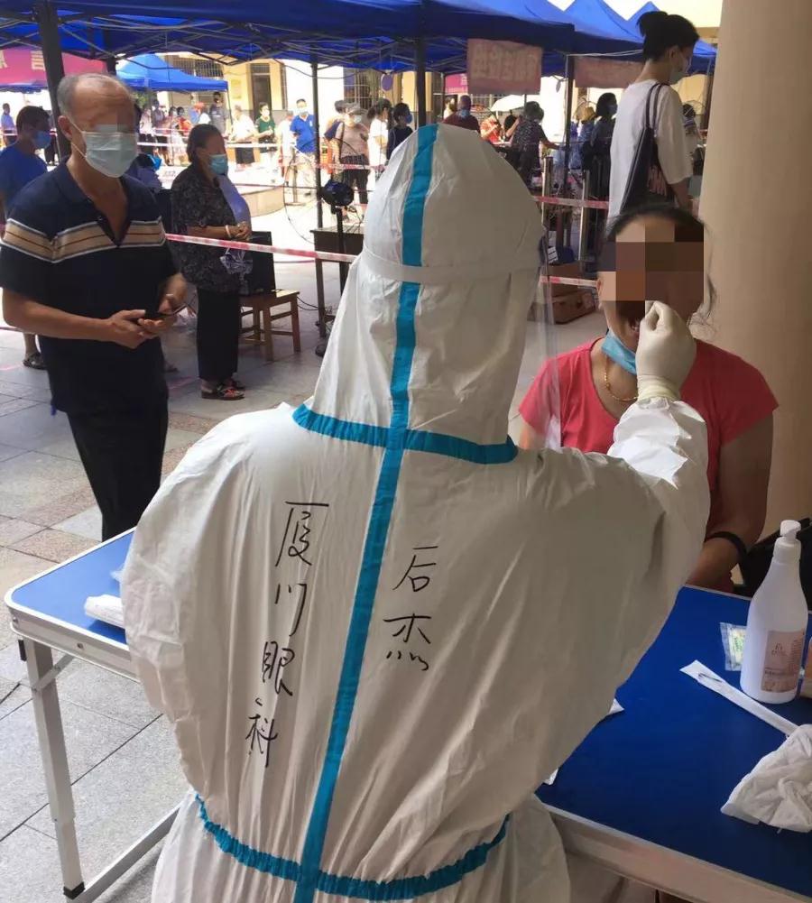 廈門市第三輪全員核酸檢測啟動。依照部署,廈門眼科中心醫(yī)護(hù)人員奔赴各社區(qū)核酸檢測點支援。截止發(fā)稿,廈門眼科中心已派出403名醫(yī)護(hù)人員前往25個社區(qū),助力廈門市打贏疫情防控這場硬仗。作為支援前線的一員,22歲的男護(hù)士——后杰,主動報名,“隨叫隨到”。