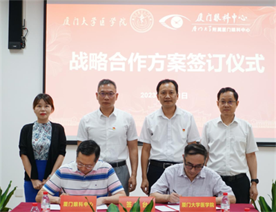 7月31日下午,廈門大學附屬廈門眼科中心與廈門大學醫(yī)學院在廈門大學翔安校區(qū)舉行戰(zhàn)略合作方案簽訂儀式,雙方簽署戰(zhàn)略合作協(xié)議并進一步深化醫(yī)療、教學和科研領域的合作。廈門眼科中心董事長蘇慶燦,中國科學院院士、廈門大學醫(yī)學院院長韓家淮代表雙方進行簽約。