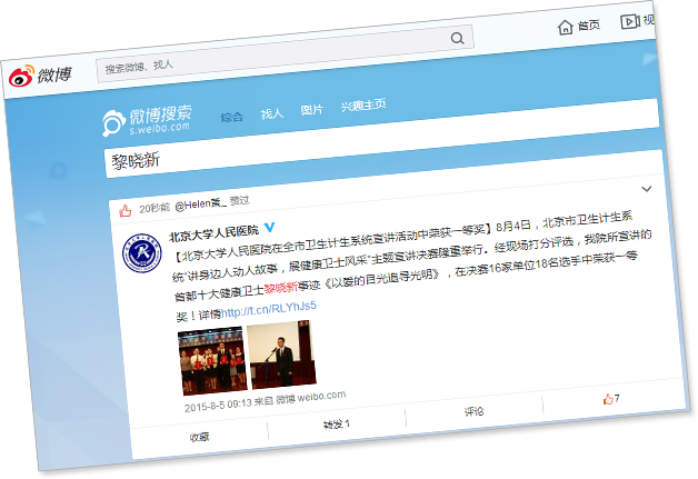 2016年榮獲“中華眼科終身成就獎”、北京大學國華杰出學者獎