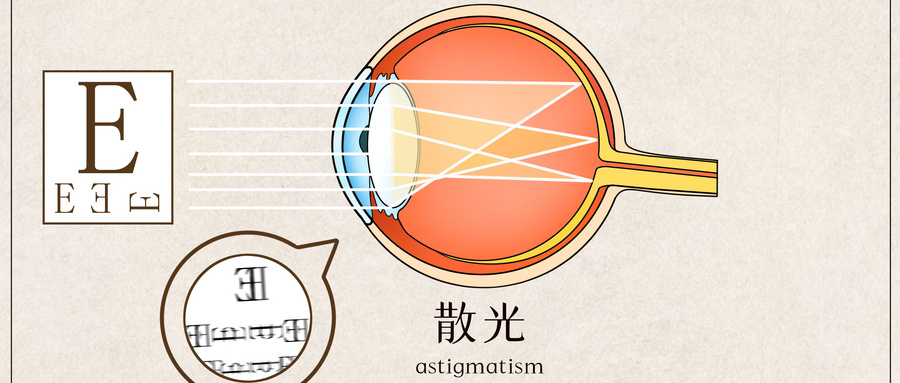 之所以會形成散光,是因為眼球在不同方向上有著不同的屈光力,導(dǎo)致平行光線經(jīng)過眼球折射后,無法在視網(wǎng)膜上聚焦于同一點,所以眼睛無法聚焦,看東西就會出現(xiàn)模糊和重影。